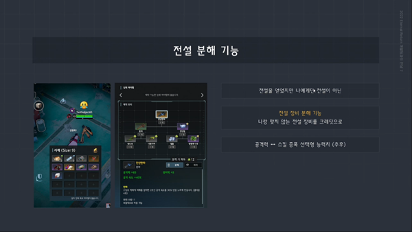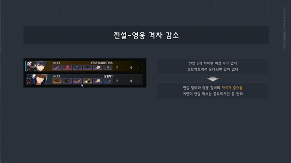 이리1 디렉터는 문제점을 해결하기 위해 훼손된 성장 방식을 다양화하는 플랜을 선보였다. 오브젝트를 추가로 배치해 사람이 과도하게 몰리는 현상을 방지한다. 전설 아이템을 좀 더 획득하기 쉽게 변경하되, 영웅 아이템과 격차를 줄이는 방향이다.