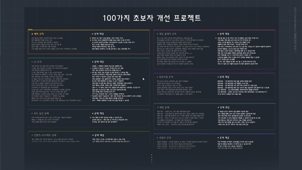 초보자나 복귀 유저가 게임에 쉽게 적응할 수 있도록 튜토리얼을 대대적으로 개편한다. 일명 '100가지 초보자 개선 프로젝트'다. 이터널리턴을 플레이하기 쉽게끔 설계할 것이라고 전했다.