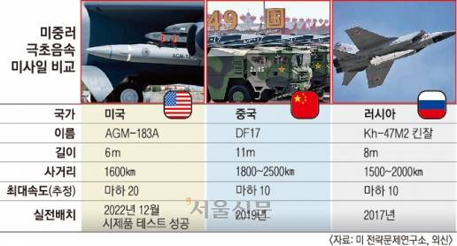 美, 작전 가능한 극초음속미사일 발사 첫 성공… 중러 맹추격