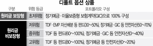 디폴트옵션 상품, 저위험은 정기예금이 절반···고위험은 TDF 비중 80~100%