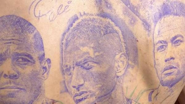 등 전체를 가득 메운 문신은 히샬리송 본인의 얼굴과 현 브라질 에이스 네이마르, 브라질 축구황제 호나우두의 얼굴로 구성됐다.