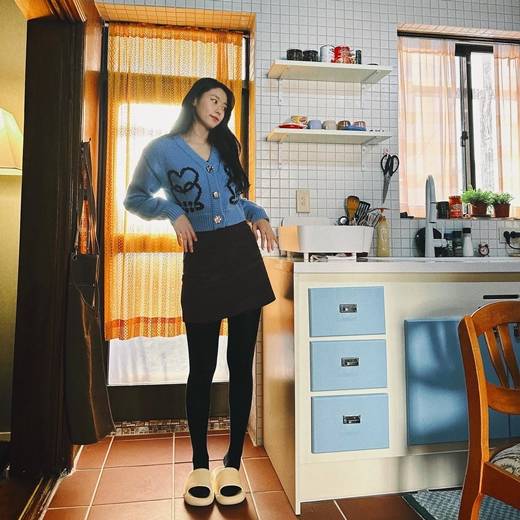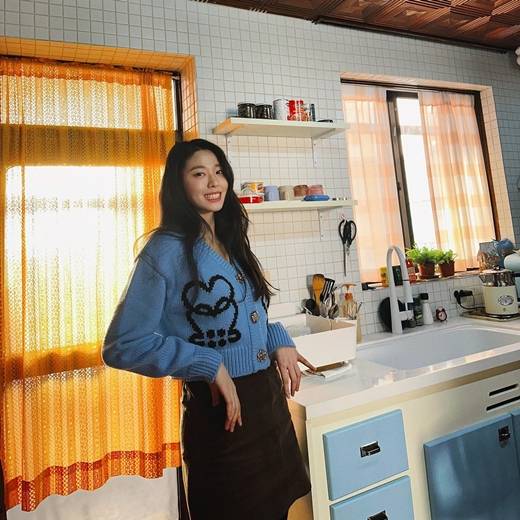 파란색 카디건에 검정색 스커트 차림의 설현이 노란색 슬리퍼를 착용한 채 싱크대 옆에서 포즈 취하고 있다. 설현의 사랑스러운 미모가 문밖에서 쏟아지는 햇살과 어우러져 한층 더 빛나고 있다. 설현 특유의 우월한 기럭지는 감탄을 불러일으킨다. 발리를 간다는 설현의 명소 추천 요청에 많은 네티즌들이 댓글로 화답하기도 했다.