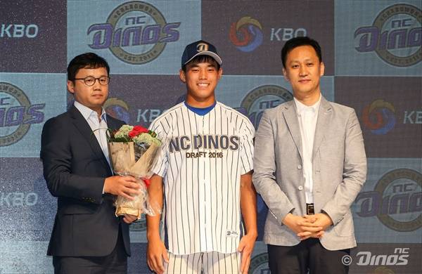 | ▲ 2016년 NC에 1차 지명을 받은 박준영(가운데)의 모습 |