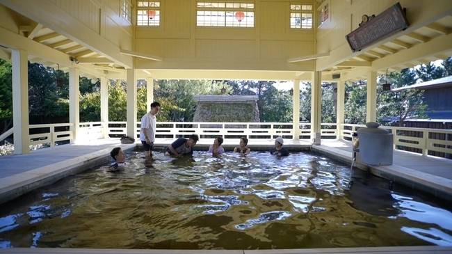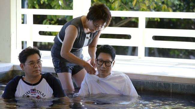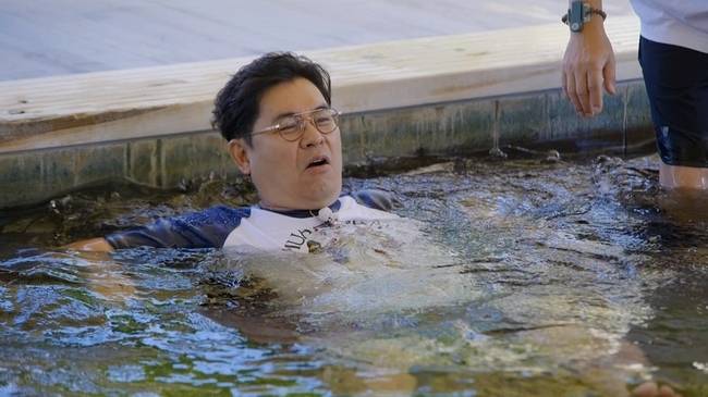 이어 노천탕에 도착한 이들은 온천을 즐기며 볼 수 있는 아름다운 풍경에 감탄한다. 하지만 발이 물에 닿자마자 뜨거운 온도에 헐레벌떡 도망간다. 특히 첫 온천 체험인 지석진이 탕과 내외하며 쉽게 몸을 맡기지 못한다. 반면 다른 멤버들은 자신의 방에 들어간 듯 온천을 즐기기 시작한다.