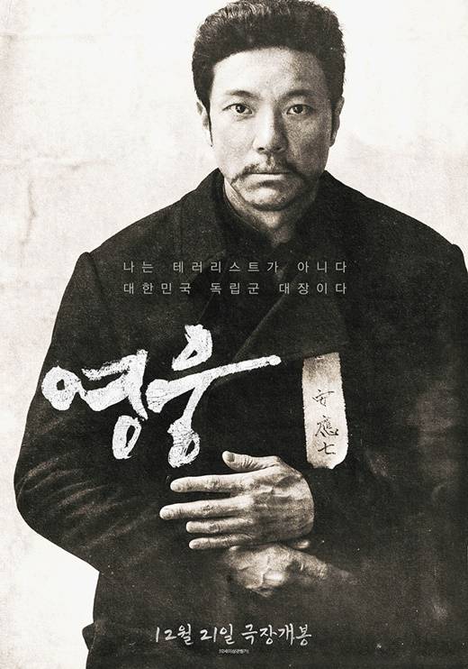'영웅'(감독 윤제균)은 1909년 10월, 하얼빈에서 이토 히로부미를 사살한 뒤 일본 법정의 사형 판결을 받고 순국한 안중근 의사가 거사를 준비하던 때부터 죽음을 맞이하던 순간까지, 잊을 수 없는 마지막 1년을 그린다.