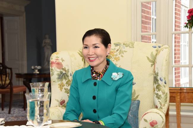 한미수교 140주년을 맞아 14일(현지시간) 미국 워싱턴 DC에 소재한 주미대한제국공사관에서 열린 제1회 인물상 시상식에서 첫 수상자로 선정된 유미 호건(63·사진) 메릴랜드주지사 부인은 수상소감을 이같이 말했다. 이 상은 한·미 우호 증진에 기여한 인물에게 주는 상으로 한미동행 네트워크(KUSF)가 제정했다.