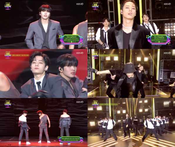 더보이즈는 주연, 큐, 선우가 무대에 올라 블랙 스트릿의 ‘노 디기리(No Diggity)’를 선보였다. 끈적하면서도 힙한 댄스로 재해석한 더보이즈는 사탕, 선글라스 등 소품 등을 이용해 무대 구성을 새롭게 했다.