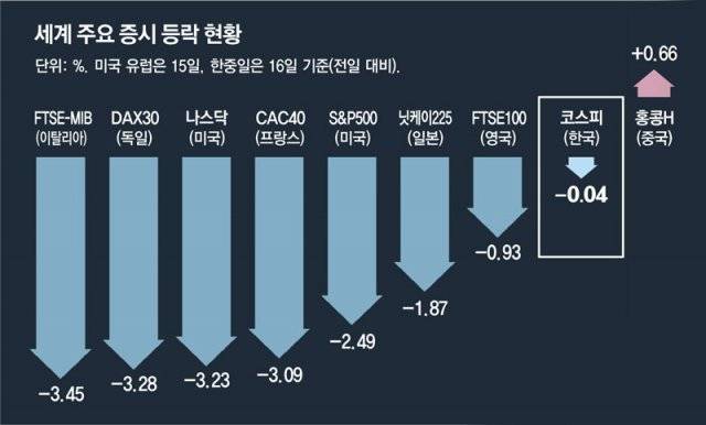美-日 증시 급락… 코스피도 하락 “과도한 긴축 위험 인식해야” 지적 외신 “한국, 긴축 속도 조정해야”