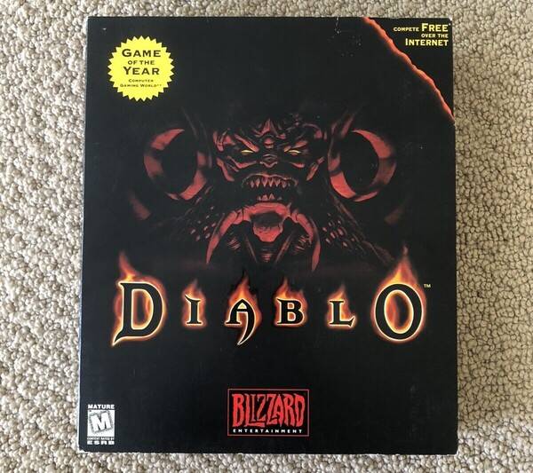 디아블로1 패키지 패키지 박스는 겉표지를 열면 게임 스크린샷과 홍보 문구가 적혀있는 구조였다. 내부에는 게임을 설치할 수 있는 CD와 함께 매뉴얼 및 제품 보증서, 달력 혹은 엽서 등 부가적인 구성품들이 담겨있다.