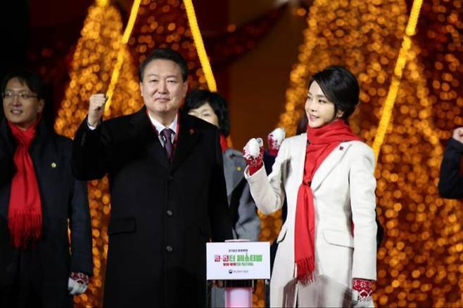 한편 윤 대통령과 김건희 여사는 전날 서울 열린송현 녹지광장에서 열린 ‘한겨울의 동행축제 윈·윈터 페스티벌’ 개막식에 참석해 크리스마스 트리를 점등하고, 중소기업·소상공인의 상품을 판매하는 부스를 둘러봤다.