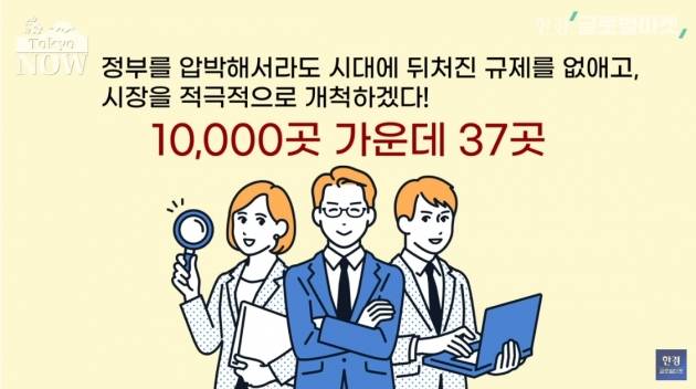 "정부를 압박해서라도 시대에 뒤처진 규제를 없애고, 시장을 적극적으로 개척하겠다"는 적극파 기업은 37곳에 불과했다. 혁신을 두려워하지 않는 기업 37곳의 매출은 지난 10년 동안 연 평균 4% 증가했다. 나머지 일본 기업들의 매출은 연 평균 1% 늘어나는데 그쳤다.