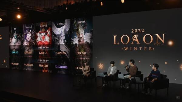 수석팀장들은 2022년 로스트아크 리뷰, 인포그래픽, 신규 업데이트 로드맵, 겨울 이벤트 섹션으로 로아온 윈터를 진행했다. 그동안 부족했던 요소를 개선하면서 새로운 콘텐츠를 추가할 계획이다. 유저 반응도 긍정적이었다.