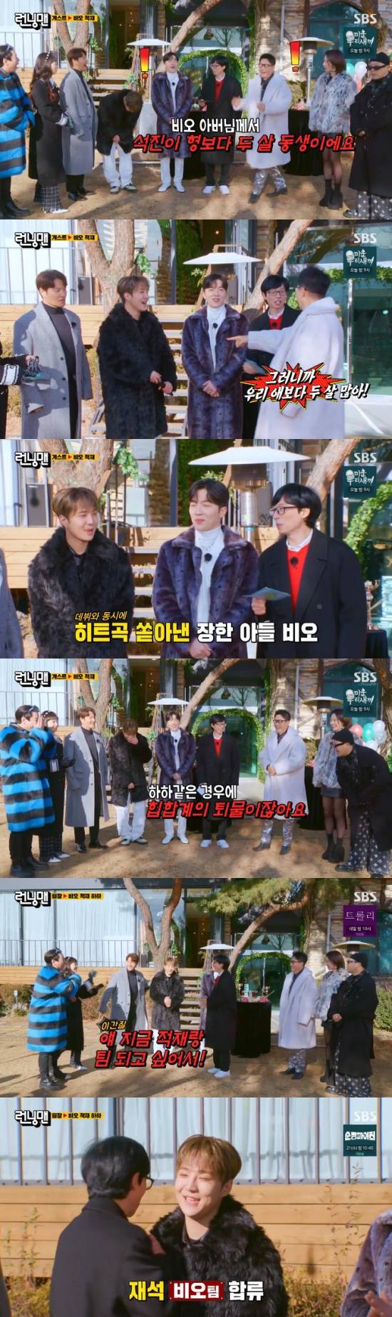 18일 방송된 SBS '런닝맨'에서는 '별 일 있는 연말 파티' 레이스로 꾸며진 가운데 비오와 적재가 게스트로 출연한 장면이 전파를 탔다.