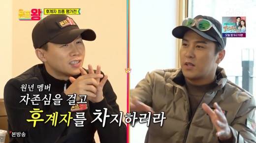 이어 장민호는 “특히 너랑 나는 다른 멤버들한테 후계자를 뺏기잖아? 진짜 너 반성해야 돼”라고 양세형에게 말하며 김국진의 후계자가 되고 싶은 마음을 드러냈다.