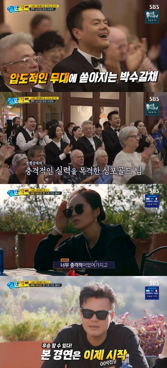 18일 방송된 SBS 예능 프로그램 '싱포골드'에서는 우승 합창팀 헤리티지 매스콰이어가 스페인 바르셀로나에서 열리는 세계 합창 월드컵(The World Choral Cup 2022)에 출전하는 모습이 그려졌다.