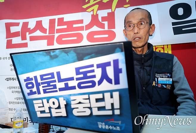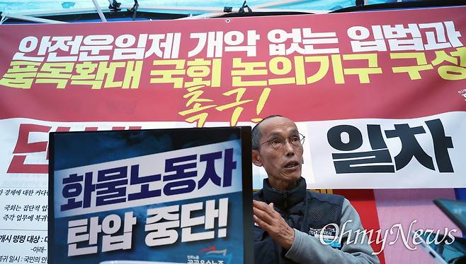| ▲ 이봉주 화물연대 위원장, 무기한 단식농성 나선 이유 ⓒ 유성호 |