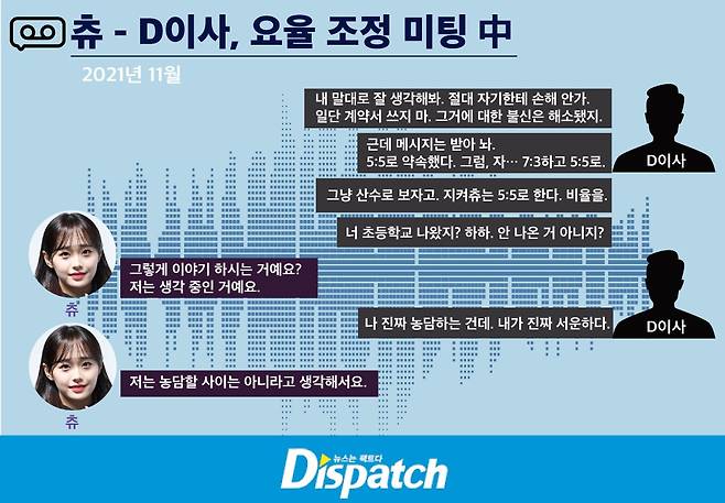 디스패치 : 2022년 4월, 부속합의서를 다시 썼다. 츄의 요율이 70%로 늘어났다. 의사 결정도 주도했는데?
