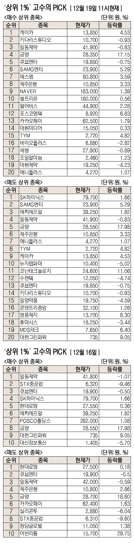 키다리스튜디오·일동제약도 매수 상위권