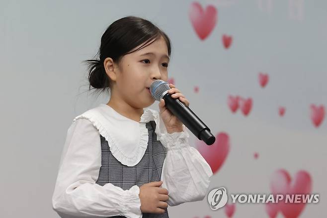 (서울=연합뉴스) 강민지 기자 = 19일 오후 서울 용산구 서울지방보훈청에서 열린 가수 이미자 '일류보훈 동행' 감사패 전달식에서 가수 김유하가 '노래는 나의 인생'을 헌정곡으로 부르고 있다. 2022.12.19