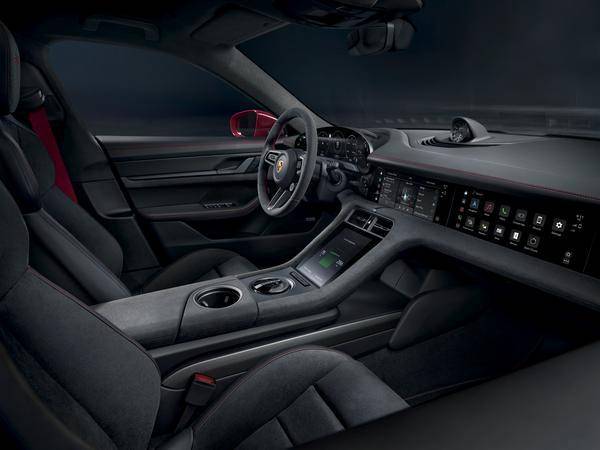 사이드 스커트와 리어 디퓨저의 인서트는 GTS 고광택 블랙 컬러로 마감했다. 기본 사양의 20인치 타이칸 터보 S 에어로 디자인 휠은 새틴 블랙 컬러다. 특히 라이트 컨트롤 기능을 포함한 새로운 파노라마 루프는 타이칸 GTS에 추가된 새로운 옵션으로 눈길을 끈다. 전자식 액정 필름을 통해 불투명한 무광 상태로 전환이 가능한 것이다.