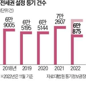 19일 대법원 등기정보광장에 따르면 올해 11월까지 전세권 설정 건수는 6만875건이다. 2018년 6만9005건, 2020년 6만5144건으로 매년 감소 추세를 보여왔다. 하지만 ‘깡통전세’ 사고가 크게 급증하자 최근 부동산 관련 인터넷 커뮤니티에는 전세권 설정 등기 관련 문의가 다시 늘고 있다. 서울 마포구의 한 아파트 임대인은 ‘임차인이 전세권 설정을 요구하는데 세입자 구하기가 어려운 상황이라 수용할지 고민이 크다’는 사연을 올렸다. 반면 한 임차인은 ‘전세금 8억7000만원인데 최근 집주인이 주택담보대출 3억원을 받을 테니 양해해 달라고 한다. 전세권 설정으로 대항해야 할지 고민’이라고 했다.