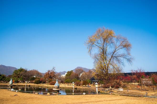 | ▲ 열대수련정원과 김명희 갤러리 엄마의 정원. 겨울을 맞이하는 열대수련정원에는 청화백병과 용머리당간으로 장식한 분수대들로, 엄마의 정원은 어린시절 우리를 위해 고생한 엄마의 여러 모습들이 소조상으로 담겨 있다. |