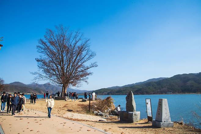 400년 느티나무 말고도 두물머리의 경치가 워낙 좋아 사진가들과 드라마 작가들이 좋아하는 장소이기도 하다. 한 줄로 나란히 서 있는 다섯 그루의 메타세쿼이아 그리고 남한강 새벽 물안개와 어울리는 나무가 있는데, 드라마 로맨스 신을 찍기 딱 좋은 장소라고 해도 과언이 아니다. 그래서인가. 새벽 물안개와 어울리는 나무 뒤편으로 커다란 액자가 있는데, 두물머리의 풍경을 액자 안에 찍으려는 사람들이 줄지어 있다.