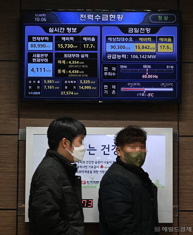 [헤럴드pic] 한파 속 급증하는 전력수요