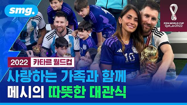 지난 19일(한국시간) 아르헨티나의 리오넬 메시가 월드컵 우승 트로피를 손에 쥐었습니다. 시상식이 끝나고 메시가 가족들과 기쁨을 나누는 모습도 화제가 되었는데요. 메시의 어머니는 물론 아내 안토넬라 로쿠조와 세 아들 티아고, 마테오, 치로가 그라운드로 내려와 메시의 우승을 축하했습니다. 메시의 아이들은 월드컵 우승 트로피에 입맞춤하고 세리머니까지 하며 귀여운 모습을 보였는데요. 메시 가족의 행복 가득한 시상식 모습을 <스포츠머그>에서 전해드립니다.
