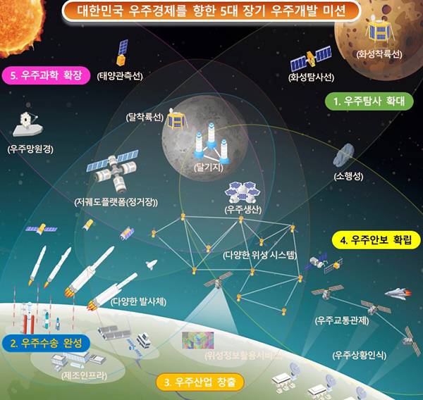 먼저 우주경제로 나아가는 5대 장기 우주개발 미션 중 첫 번째로 독자적인 우주탐사 계획 추진을 통해 우주경제영토를 확장해 나간다.