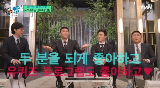 김민재 선수는 출연 계기에 대해 "워낙 두 분을 좋아한다. 와이프가 유퀴즈' 섭외 왔을 때 무조건 나가라고 했다. 두 분을 좋아하시고 '유퀴즈' 프로그램을 좋아하신다"라며 밝혔다.