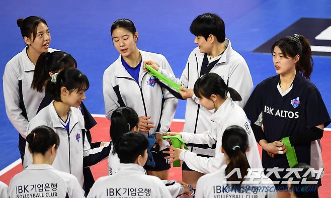 V리그 여자부 3라운드 IBK기업은행과 KGC인삼공사의 경기가 열린 지난 21일 화성실내체육관. 경기 시작 1시간 전인 오후 6시. 공식 훈련에 앞서 IBK기업은행 선수들은 승리를 다짐하는 미팅을 했다.