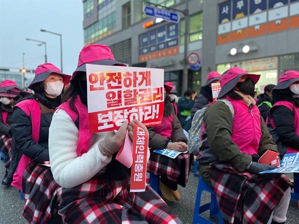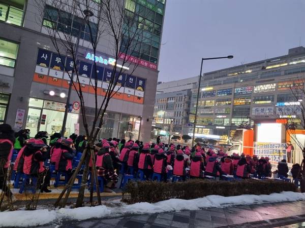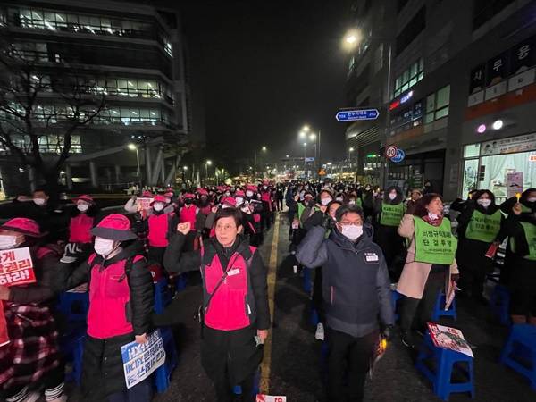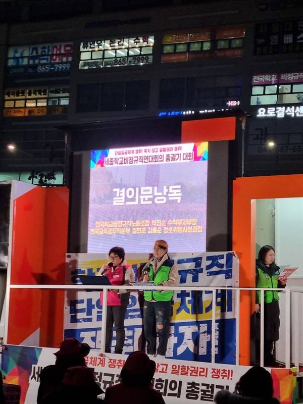 12월 21일 저녁, 세종교육청 앞에서 세종학비연대회의 주최로 '단일임금체계 쟁취! 죽지 않고 일할 권리 쟁취! 세종학교비정규직노동자 총궐기대회'가 열렸다.