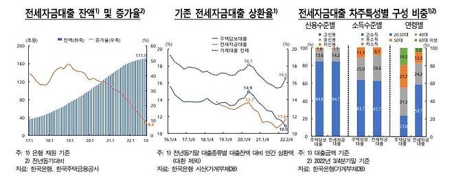 지난 3분기 기준 전세자금대출 차주 중 고신용자와 고소득자의 비중이 각각 84.7%와 62.7%로 높고, 총부채원리금상환비율(DSR)은 31.5%로 낮은 편으로 나타났다.
