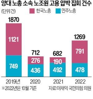 건설 현장에서 지역 소속 노조의 힘은 절대적이다. 민주노총뿐 아니라 한국노동조합총연맹과 이름을 알 수 없는 소규모 노조 수십 개 단체가 ‘나와바리(영역)’를 주장하며 돈이나 이권을 뜯어낸다. 비(非)노조원보다 훨씬 높은 임금에 고용해달라고 주장하고, 일자리가 없으면 일정액을 상납받고 집회를 멈춰준다. 경찰 고위 관계자는 “일하지 않고 돈만 받아가는 조폭식 행태를 보이고 있다”며 “명백한 불법 갈취 행위”라고 말했다.