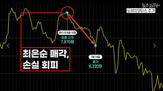 통화가 이루어진 날은 2011년 6월 10일이다. 당시 주가 그래프를 보면 직전 2주 동안 가파르게 올라 꼭지점을 찍으며 장중 7,970원을 기록한 주가가 이날을 기점으로 하락하기 시작하는 것을 알 수 있다. 이후 한 달동안 주가는 계속 떨어져 6,200원대까지 내려갔다.