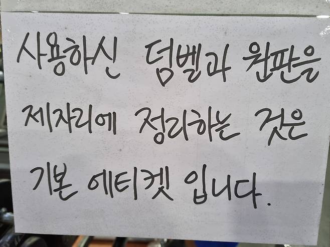 | ▲ 헬스장 에티겟 헬스장에 붙여 있는 에티켓 |