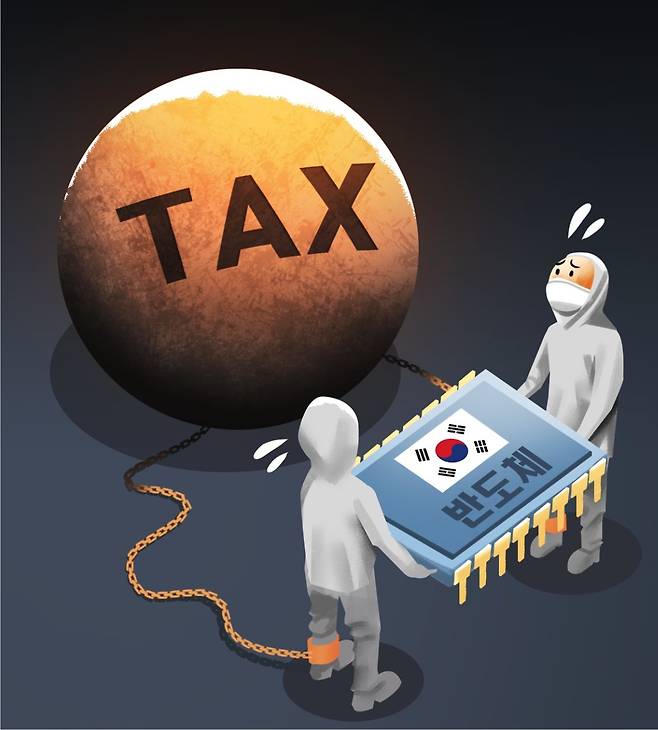 경쟁 기업과 투자 경쟁을 하면서도 법인세 등 세 부담률이 높다 보니 한국 반도체 기업의 매출액 대비 순이익률은 미국, 일본, 대만 등 이른바 ‘칩4’ 국가에서 홀로 하락세를 나타내고 있다. 한국의 순이익률은 2018년 16.3%에서 지난해 14.4%로 1.9%포인트 감소했다. 같은 기간 미국은 3.9%포인트, 일본은 2.0%포인트, 대만은 1.1%포인트 올랐다. 투자 여력도 점차 떨어질 수밖에 없다.