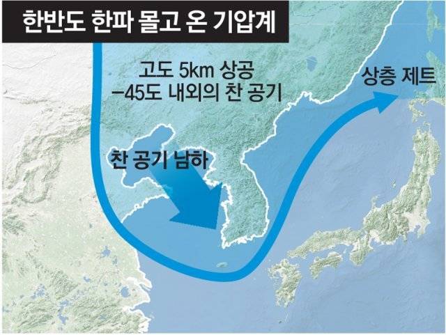 한반도를 덮친 북극발 한파가 크리스마스까지 기승을 부릴 것으로 전망된다. 22일부터 호남과 제주를 중심으로 눈이 쏟아져 피해가 속출하는 가운데 기상청은 폭설은 24일, 한파는 25일까지 계속된다고 예보했다. 기상청은 23일 오후 6시 이후 서울, 경기, 강원, 충북, 전북, 경북에 한파 경보를 발효했다.