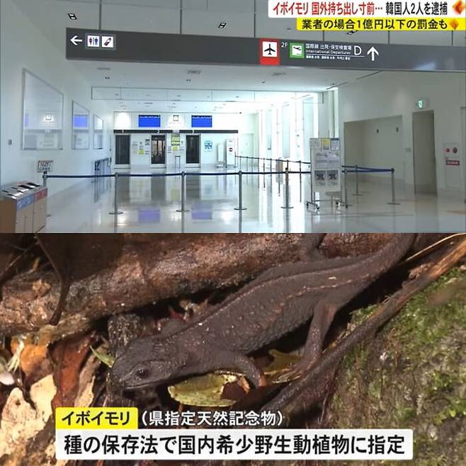 일본 오키나와에 주로 서식하고 있는 천연기념물이자 멸종위기 생물인 '이보이모리'를 국내로 밀반입하려던 한국인 관광객 2명이 붙잡혔습니다.