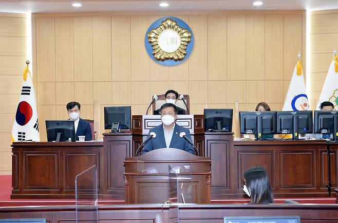 | ▲ 의회에서 발언하는 백성호 의원 |