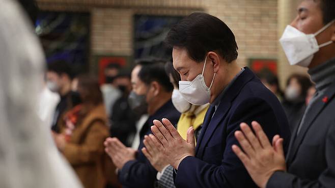 윤석열 대통령과 김건희 여사가 성탄절을 하루 앞둔 24일 저녁 서울 중구 약현성당에서 열린 '주님 성탄 대축일 미사'에 참석했다고 대통령실이 밝혔습니다.