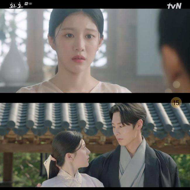 한편, 진호경(박은혜 분)은 진부연에게 “집으로 돌아가자. 가둬두지도 혼인도 강요하지 않겠다”라고 말했다. 이에 진부연은 “장욱 옆에 있겠다고 약속했습니다”라고 거절했고, 진호경은 “너 그자에게 마음을 줬구나. 그만두거라. 부연아”라고 말했다. 하지만 진부연은 “여기서 그만두고 싶지 않습니다. 좋아서 한 혼인이다”라고 고백했다. 그 말에 진호경은 “그렇게 말한다면 좋다. 그 자를 집으로 데려와봐라. 혼인한 사이라면 그래야 하는 것이다. 사죄하고 앞으로 잘 부탁한다고 말하고. 혼인한 사이라고 한다면 그 정도로 해야지”라며 두 사람을 초대했다.