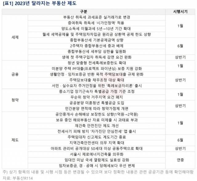 새 정부가 들어서고 부동산 시장의 침체도 깊어지면서 부동산 제도가 다수 수정됐습니다. 이에 따라 내년부터는 청약과 대출, 세제 등 부동산 제도 전반이 적잖이 달라질 전망인데요. 부동산R114가 낸 '2023 달라지는 부동산 제도' 자료를 바탕으로 <코주부>가 무주택자와 유주택자가 각각 눈여겨볼 만한 내용을 추려봤습니다.