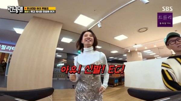 멤버들의 우려대로 송지효는 고무장화 때문에 러닝에 어려움을 겪었다. 그는 “아 신발. 아 신발 EC”라고 자신도 모르게 짜증을 냈고 잘못 들은 하하는 “뭐라고 한 거야?”라며 당황스러워해 웃음을 자아냈다.