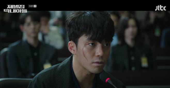 25일 방송된 JTBC ‘재벌집 막내아들’에선 청문회를 통해 20년 전 살인사건의 진실을 밝히고 순양 오너일가 경영권 박탈에 일조하는 현우(송중기 분)의 모습이 그려졌다.