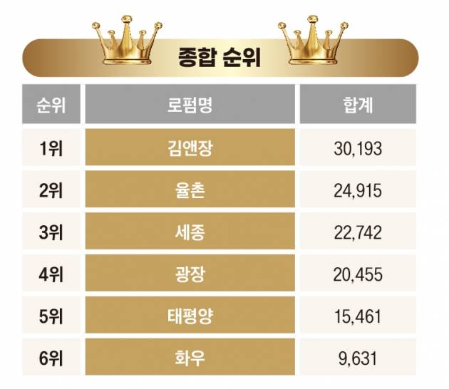 김앤장은 2022년 평가에서 종합 점수 3만193점을 획득했다. 2위 율촌과의 점수가 5000점 이상 차이가 날 정도로 압도적이었다.