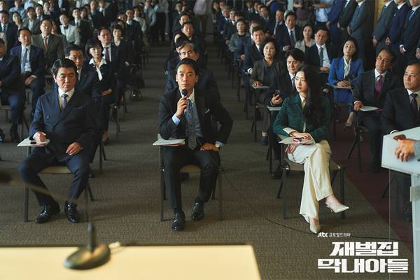 마치 이 작품이 가진 '회귀물'이 그러하듯이 되돌아 <재벌집 막내아들>의 이야기를 다시 살펴보면 그 신드롬의 진원지가 어디에 있었던가를 다시금 보게 된다. 그건 과연 진도준의 복수극에 있었을까. 그 복수극이라는 건 모든 미래를 알고 있다는 판타지이고 드라마는 심지어 이걸 백일몽으로 결말내버렸다. 오히려 판타지를 쫄깃하게 만든 건 그래서 주인공의 활약보다는 그가 상대하는 막강한 빌런들의 대적과 붕괴가 아니었나 싶다.