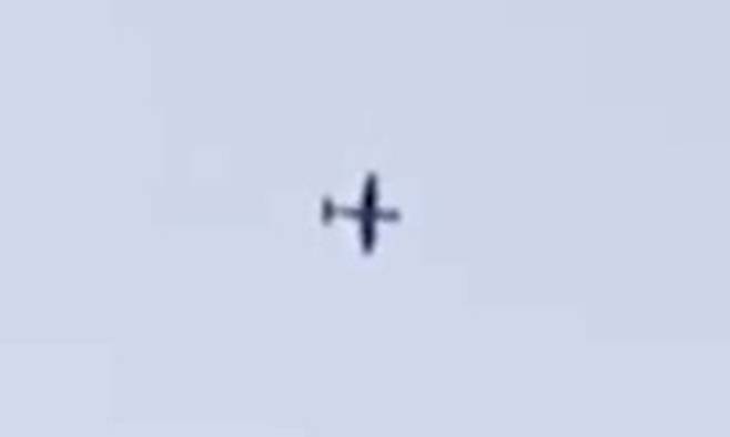 | 김포 상공서 포착 26일 오전 경기 김포시 고촌읍 상공을 비행 중인 북한 무인기를 추적하는 군용기 모습. KBS 화면 캡처 |