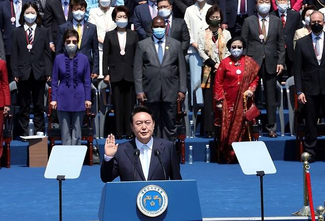 3월9일 제20대 대선에서 윤석열 대통령이 당선됐다. 2위인 이재명 더불어민주당 후보와는 득표율 0.73%포인트(24만7077표) 차이였다. 5월10일 취임식에서 윤 대통령은 “자유, 인권, 공정, 연대의 가치를 기반으로 국민이 진정한 주인인 나라를 만들겠다”고 밝혔다. ‘자유’를 35차례 강조한 반면, ‘통합’은 한차례도 언급하지 않았다.